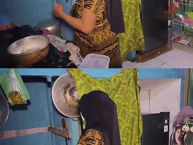 Stepmother cooking during the time that masturbating in the kitchen
