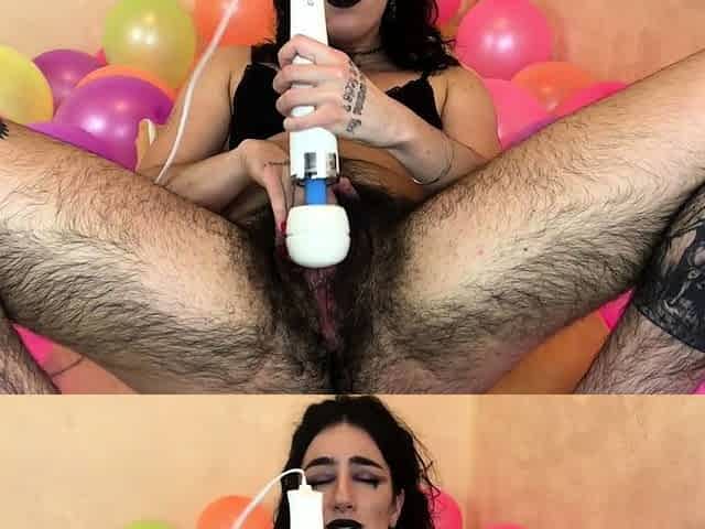 hairy pussy Ole Nina doesn't need a dick for the amazing orgasm