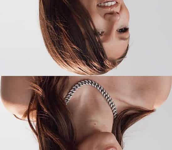 Cute-looking brunette Angeline Red opens her little wet pussy