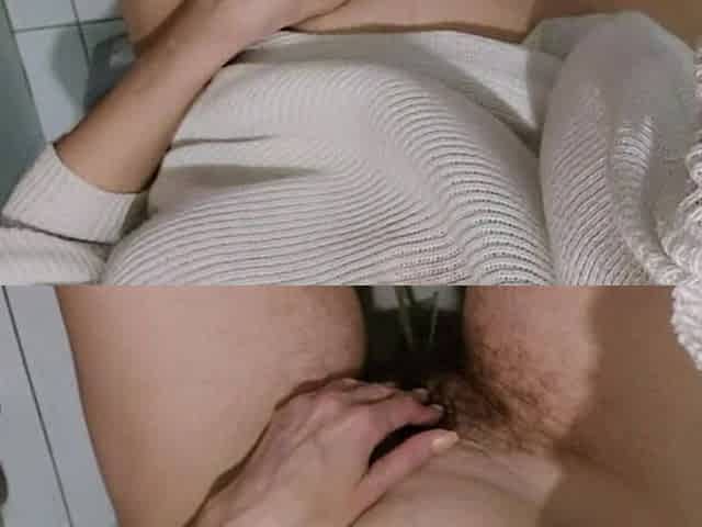 Sexy Brunette Tries on Tights, Hairy Pussy, Big Ass, Big Tits.