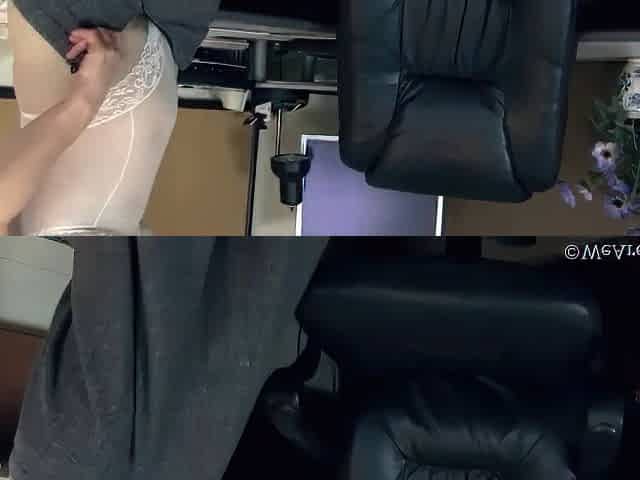 Seductive office babe uses a sex toy