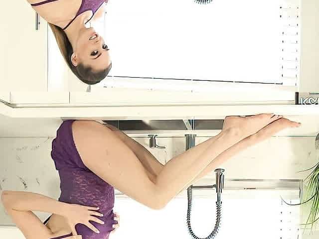 Skinny gymnast Anna Netrebko does the splits and shows yummy teen pussy