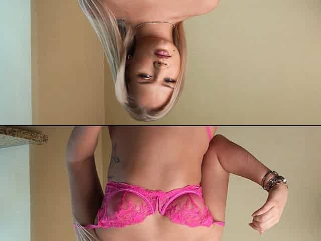 Small-tit chick Paige Owens is playing with her little hole