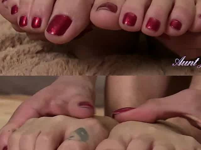 Cherise Rubs Her Feet and Her Hairy Pussy