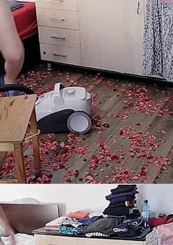 Amateur Wife Having Fun with Roses. Sexy Mom Cleans with the Vacuum Cleaner.