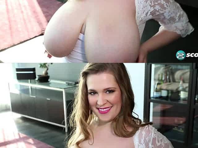 Breasty solo curvy honey finger screws her twat