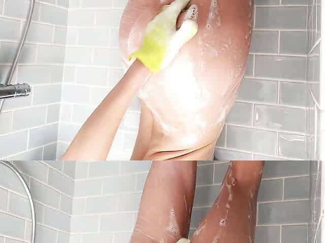 Beautiful solo play in the bathroom with a hot brunette Macy Ann