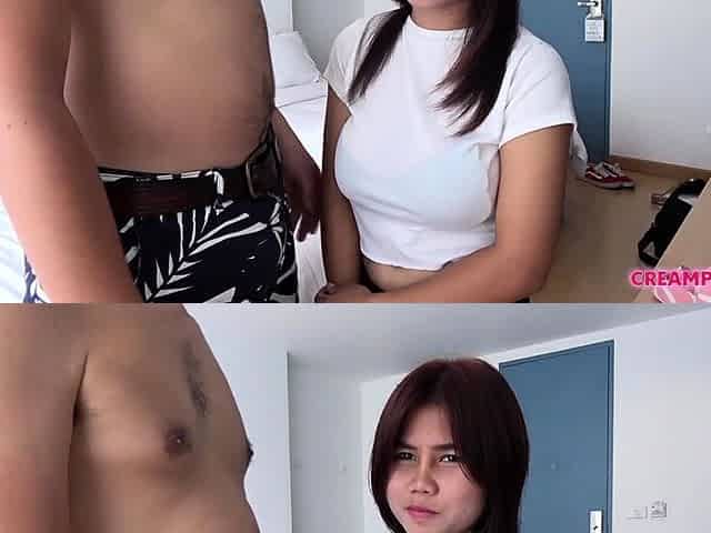 Cute looking Asian chick Mod gives a blowjob and gets bushy cunt fucked