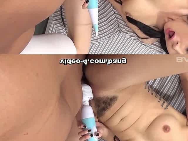 Alice Bright strokes her makeup brush on her pussy