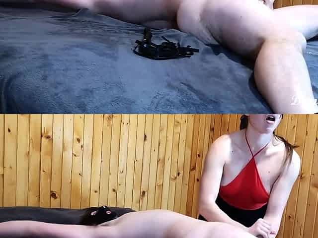 Begging for release from handcuffs during femdom JOI session with sex toys