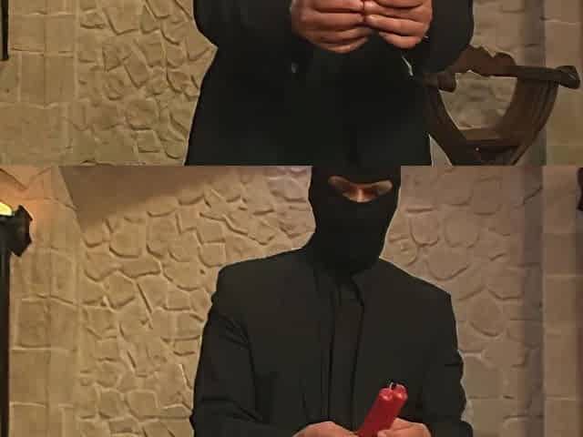 Handcuffed, blindfold, big cumshot