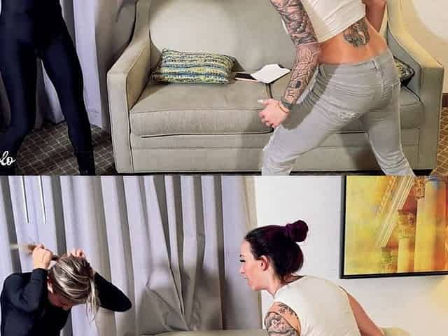 Handcuffed Slave Chastised, Bent Over the Kitchen Table, and Mercilessly Pegged with a Thick Strap-on by His Empress.
