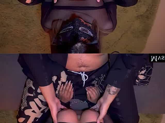 VIP4K. Sexy gals surprise concupiscent dude with a great lesbo show with hawt groans