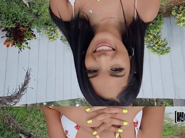 Tanned Brazilian babe Alina Belle is fucked by horny macho outdoor