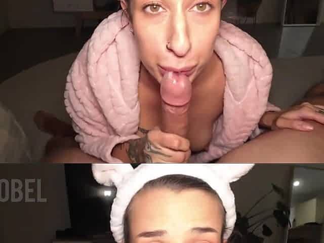 Sie liebt es, nach einem Handjob zu blasen und zu schlucken