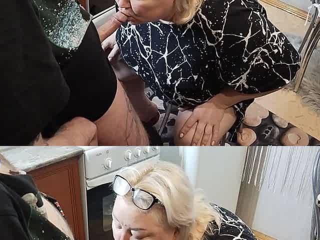 Mother-in-law Gives Blowjob to Get a Mouthful of Cum