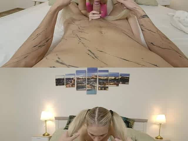 Hot Blonde Sucks and Milks Massive Cum Loads
