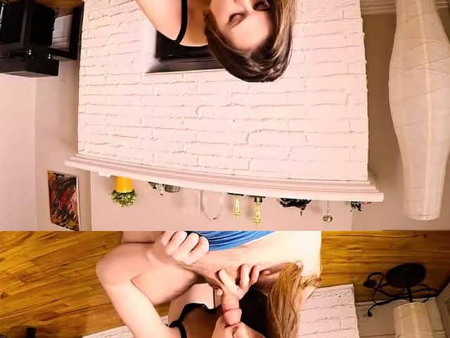A genoux elle fait une bonne fellation et il ejacule