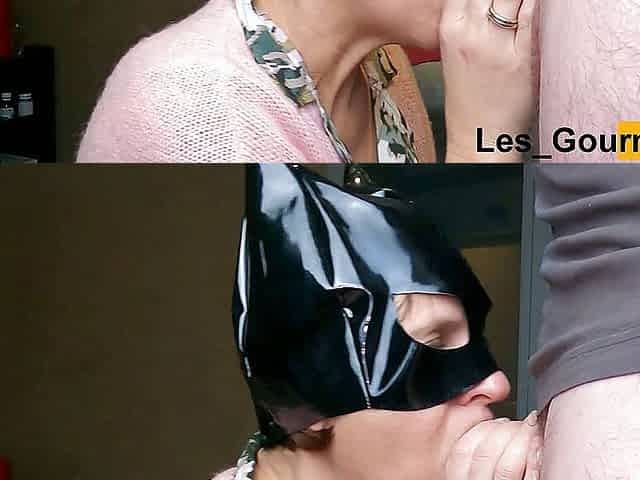 MILF catwoman gives close-up blowjob and swallows cum throbbing to play with next