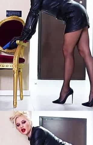 Sexy Nylon & Leather Seductress Melts Him with Tease