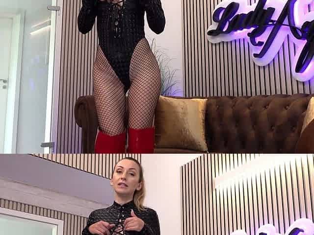 Preview - On fishnet catsuit and ebony high heels, gloryhole taking a knob down my throat and snatch