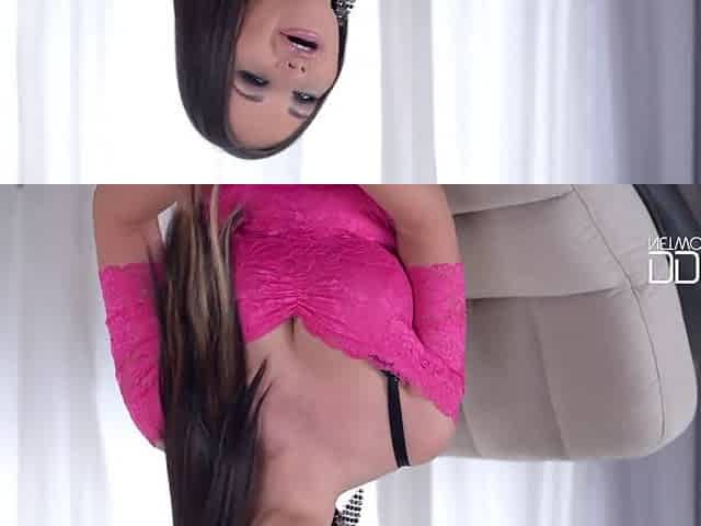 Hot ass brunette pornstar in heels sucks two meaty dicks