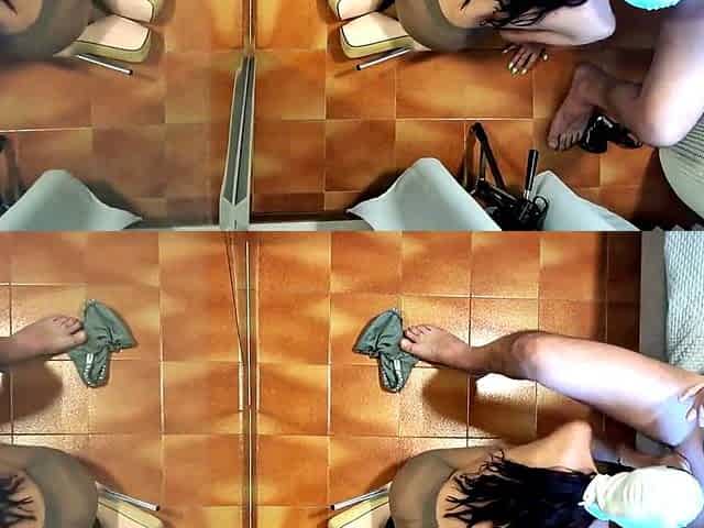 oral-job in 69 position in fishnet and high heels - two different poses