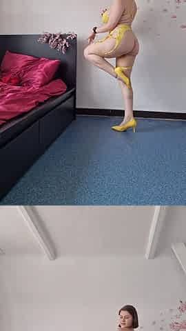 Stripping Out of Yellow Lingerie Just to Play with My Pussy