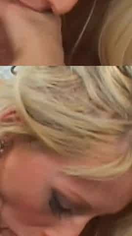 MILF with Blonde Pigtails and Perfect Tits Gives a POV Blowjob with Cumshot in Her Mouth