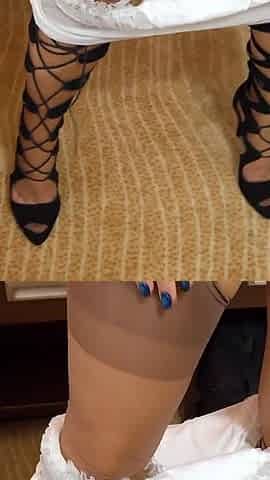 Blowjob and footjob in stockings and heels