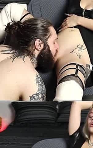 Sexy blonde in high heels gives a wild blowjob and passionate pussy licking