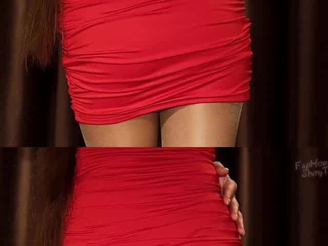 860 Shiny Seamless Pantyhose and Red Sexy Mini Dress