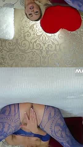 Horny in Blue Fishnets Heels on, Pussy Rub Anal Till Cum