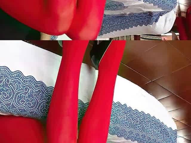 The milf with beautiful legs, red pantyhose and black heels