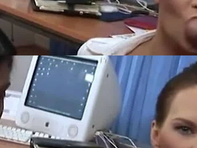 Sofia Cucci on the desk puts a big dildo in every hole