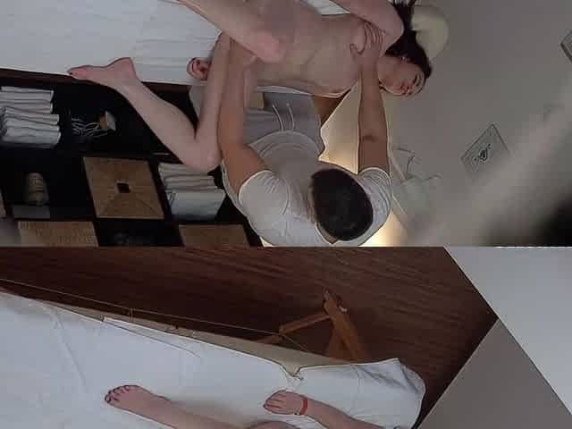 Slim brunette fucks the masseuse