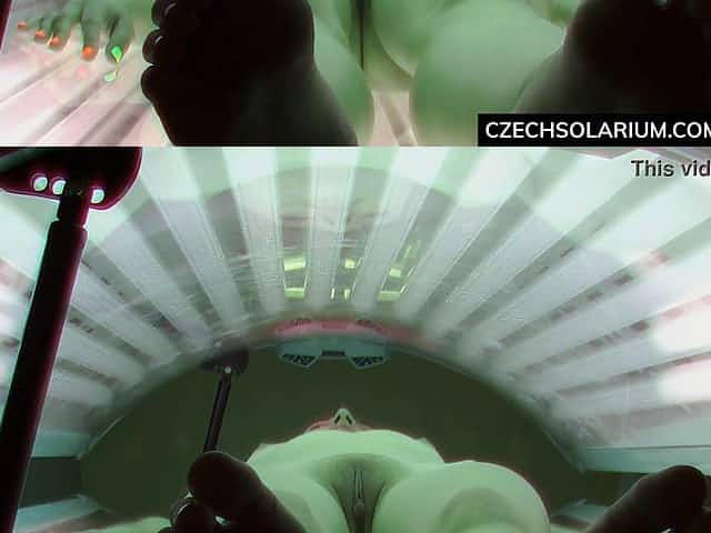 Girl playing with her pussy in solarium. Here is the first hidden camera in solarium!