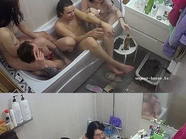 Amateur threesome on hidden cam
