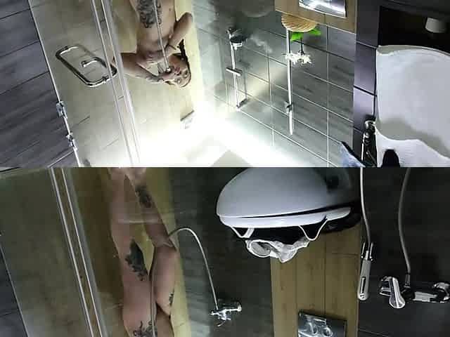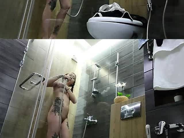 Video of my tattooed teen girl taking shower