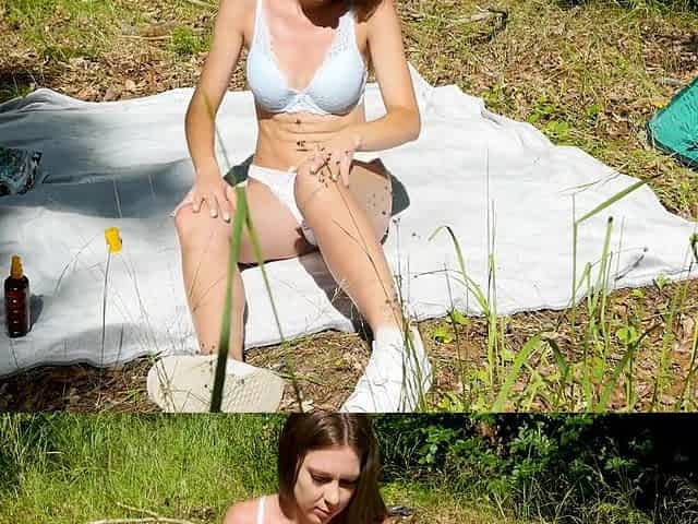 Sweet petite redhead pussy massage fuck on hidden cam