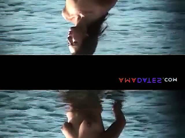 Cute girl on a public beach. What it does hands under water