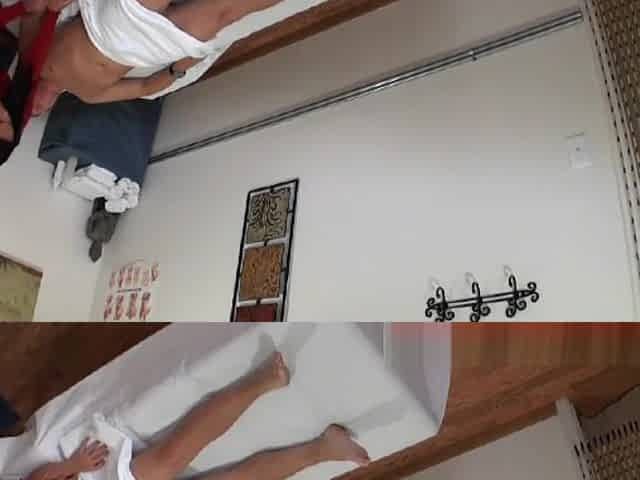 Hidden camera in massage parlor - Chubby masseur fucks client