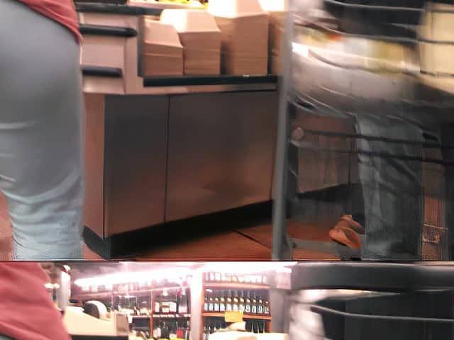 Candid Brunette Feet and Legs in Flip Flops Starbucks