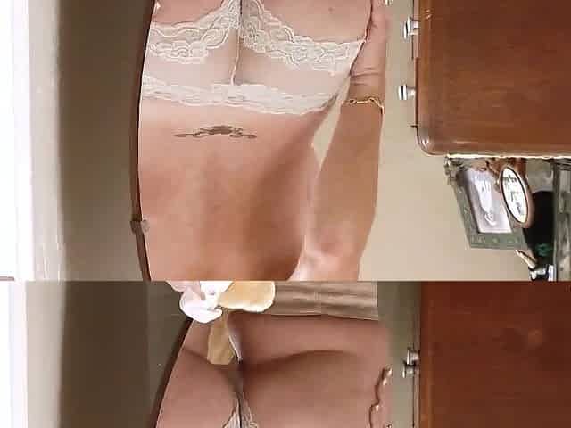 Home alone with buxom MILF enjoying pussy play in high heels and stockings