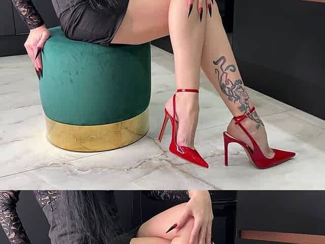 Crossed Legs and Double Crossed Legs and Red High Heels with No Back, Slingback, Ankle Strap Heels on Me