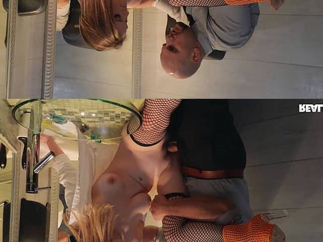 hot MILF takes a big dong up the pussy in the toilet