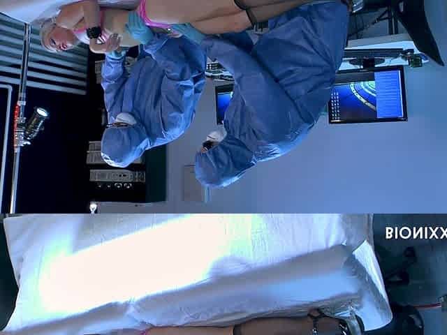 Lesbo nurse rubs her patient feet in stockings and barefoot