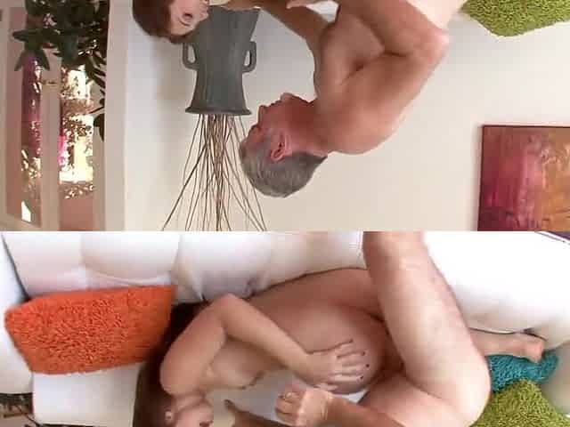 Brunette slut gets plowed on the couch