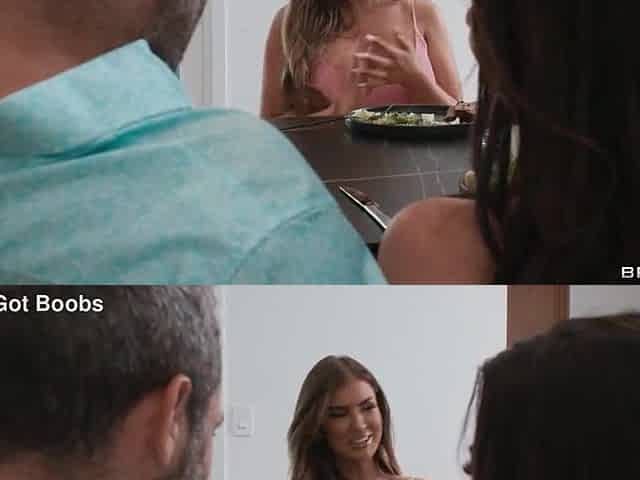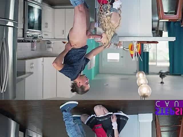 Busty Blonde Stepdaughter Fucks Herself With A Huge Dildo At The Dinner