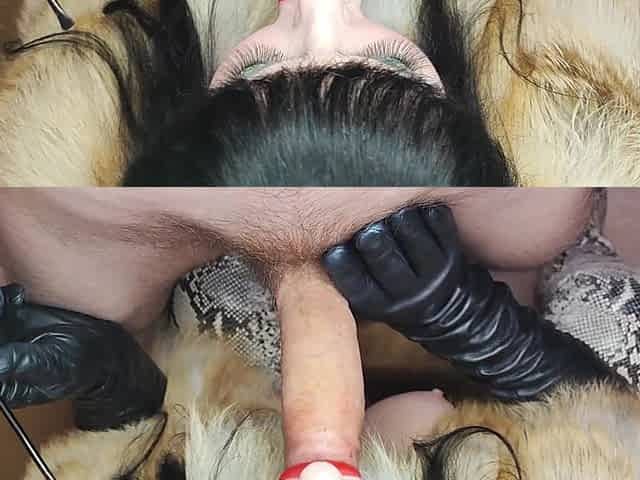 Laony in black fishnets gets naughty with her big dildo while spreading her slit